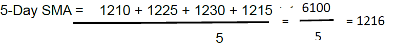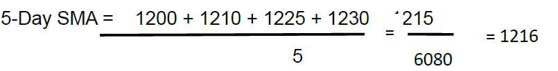 To calculate the 5-day Simple Moving Average (SMA), we sum up the closing prices for these 5 days and divide by 5: