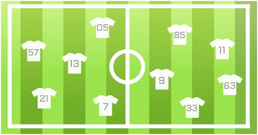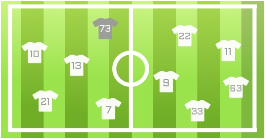 Player 73 in a grey jersey, players 10 and 22 (even numbers) who didn’t match the criteria were removed and new players 05, 57 and 85 who fit the criteria, were sent in their place.