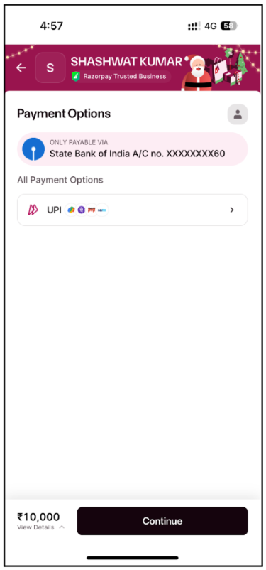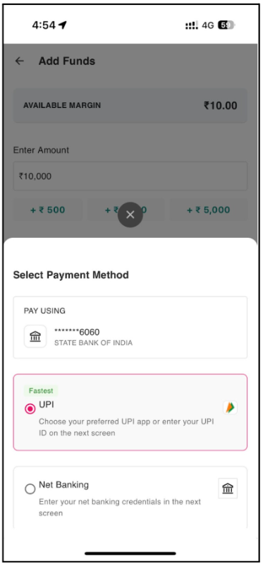 Clients must ensure that UPI payments are made strictly from the bank account registered/linked with us. Any transaction made from an account other than a registered/linked bank account will be treated as a third party transfer, and the limit will not be processed.