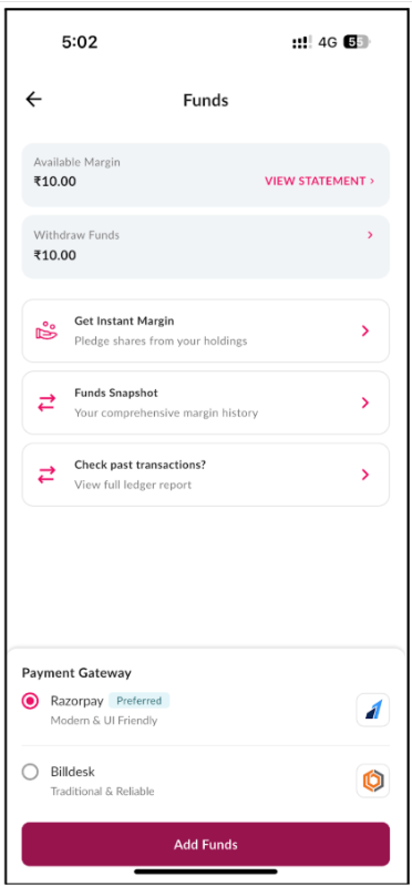 Answer: To ensure prompt activation of instant trading limits, we recommend you to use your linked primary bank account for fund transfers to the specified HDFC Bank account. Please note if the funds are transferred from a different account, which our system does not recognize, our team will initiate a refund.