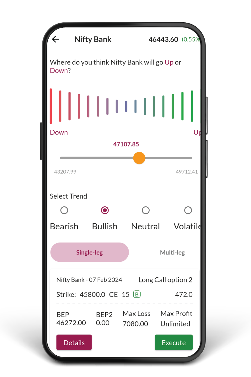Explore and execute with pre-defined Option strategies like Straddle, Strangle, basis your market views.